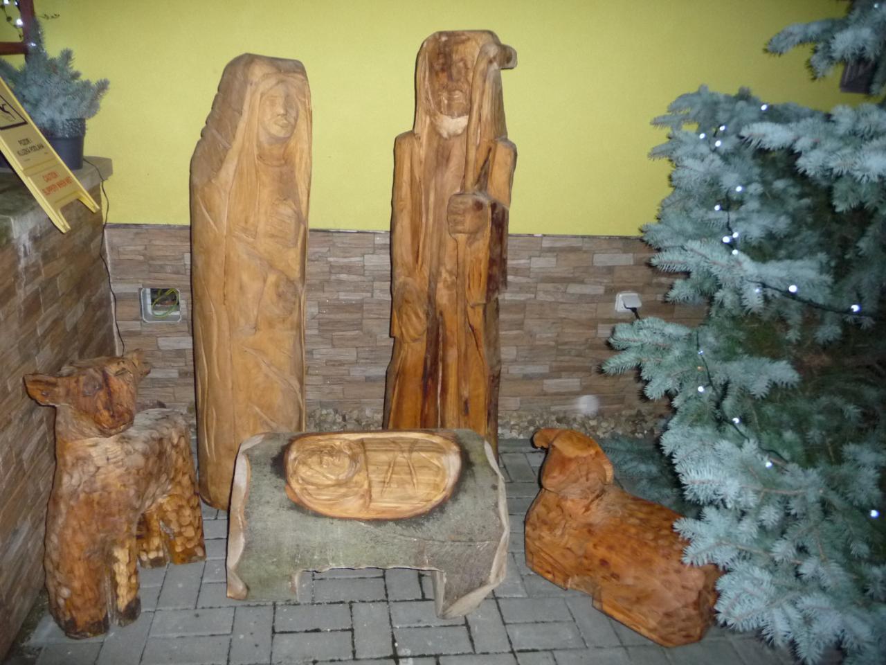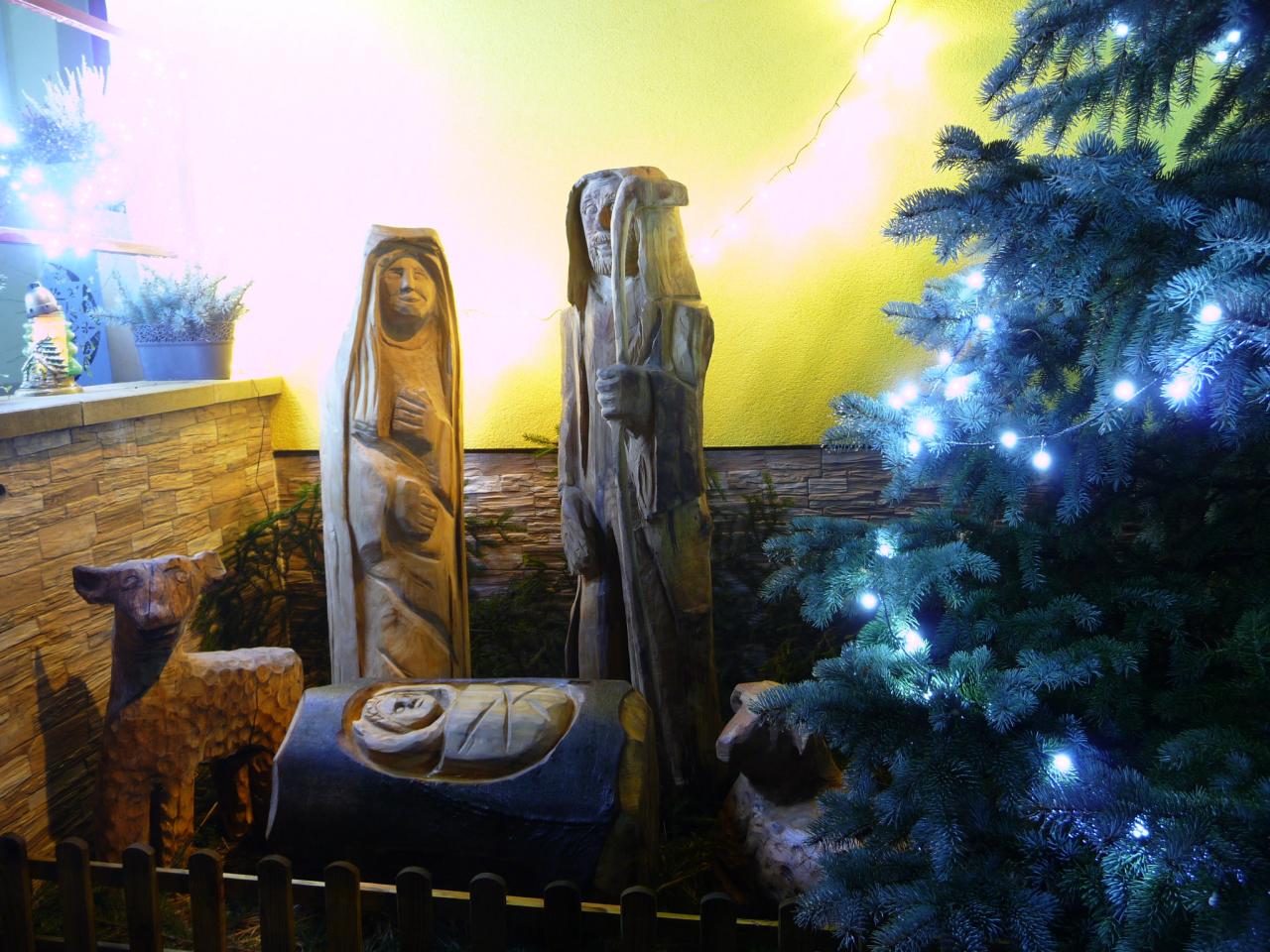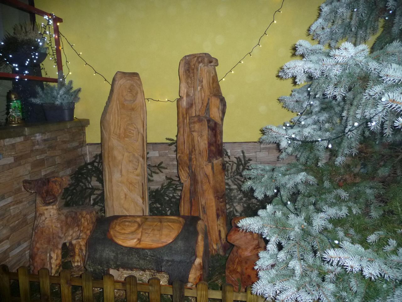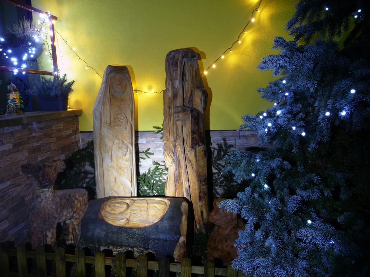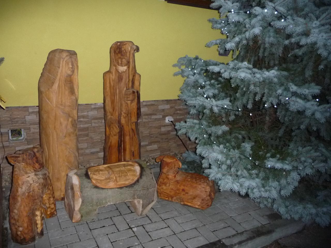 Dřevěný vyřezávaný Betlém u obecního úřadu od 15.12.2020.
