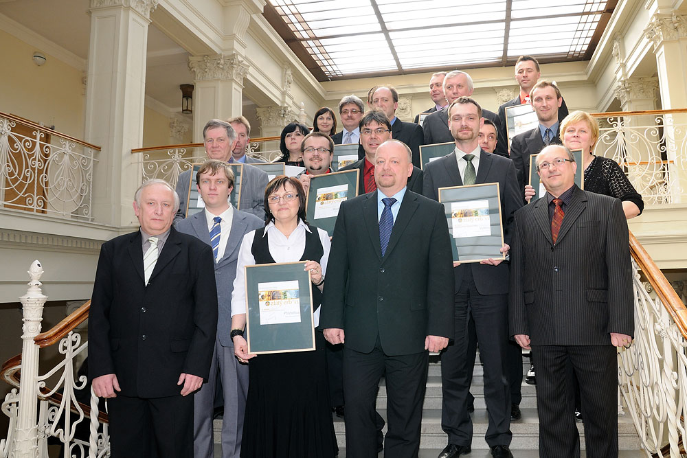 Slavnostní ceremoniál předávání cen obci Skrchov za umístnění se v soutěži Zlatý erb 24.března 2011 v Brně.