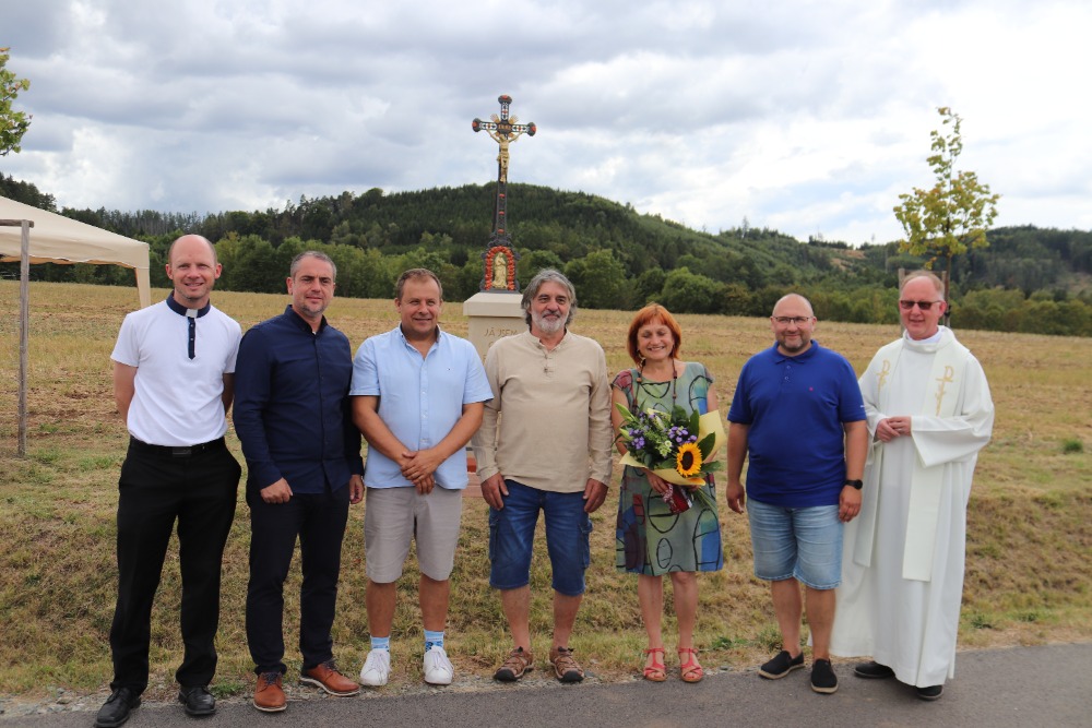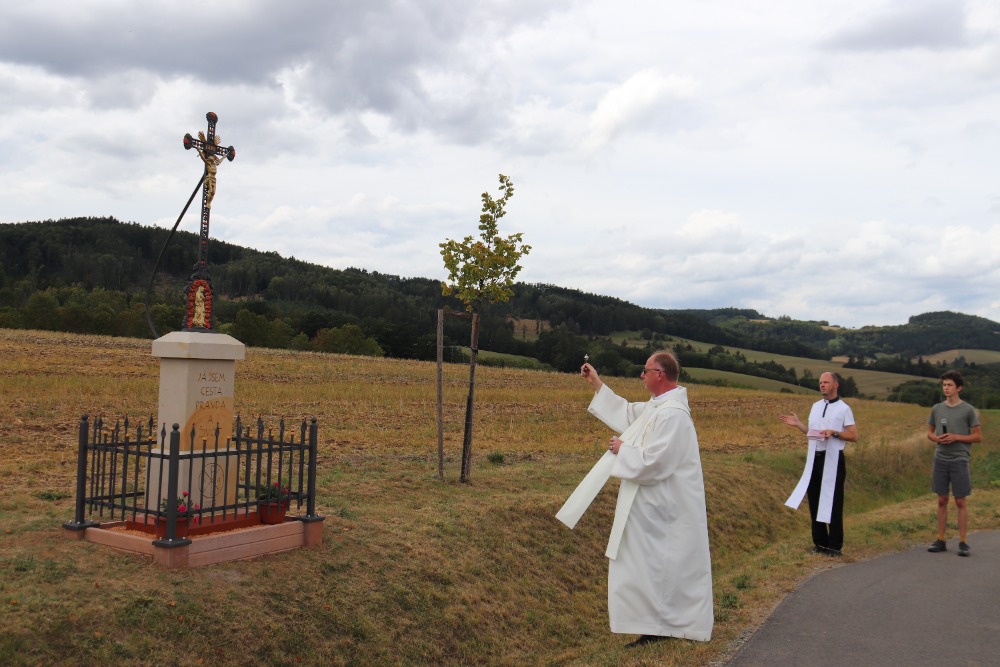 „Celá naše země je protkána sítí silnic a cest, které mimo jiné slouží k tomu, aby lidé k sobě měli blíže, mohli se navštěvovat a utvářet společenství. U všech těchto komunikací mnohde stojí drobné sakrální stavby, kapličky a kříže, které jsou pro nás důkazem víry našich předků. Tuto víru přenechali i nám současníkům s poselstvím, abychom i my v cestě víry, naděje a lásky pokračovali. I tento kříž byl postaven s podobným záměrem“.